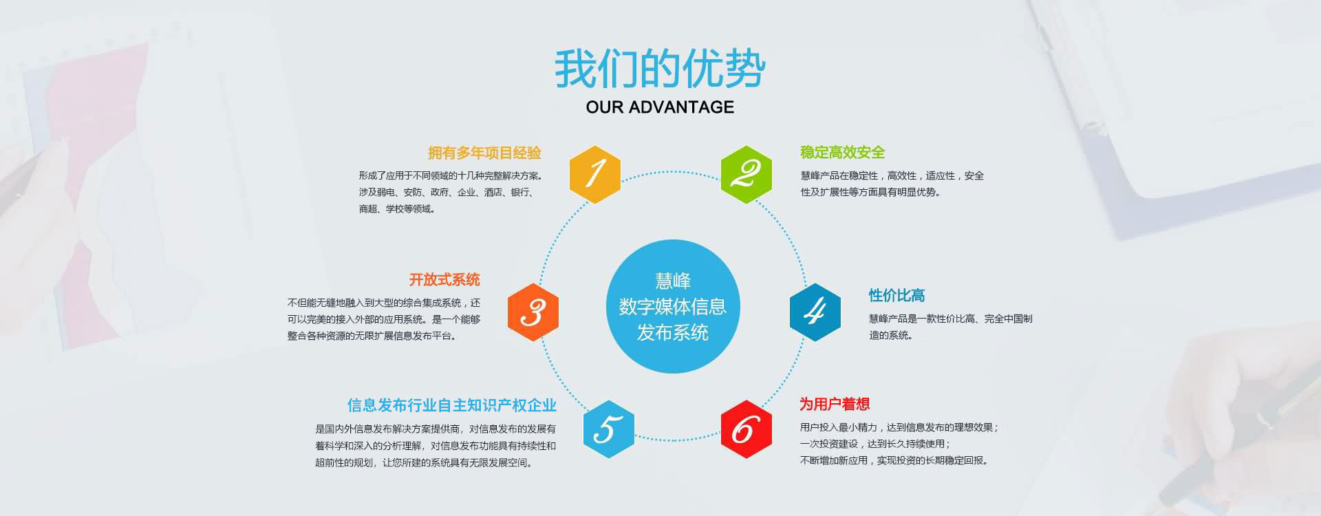 公司本著互惠互利,誠實信用的原則,真誠面對用戶,并愿與社會各界展開廣泛的合作。 公司現(xiàn)已是國內的數(shù)字媒體信息發(fā)布系統(tǒng)解決方案提供商,產(chǎn)品涉及大中型企業(yè)、商業(yè)地產(chǎn)、各級黨政機關、軍隊、司法、信息通信、金融、醫(yī)療、教育、能源交通、公用事業(yè)領域。